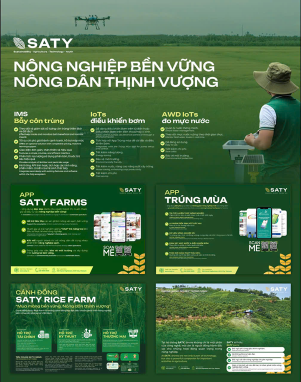 SATY Greenhouse bộ giải pháp công nghệ tiên tiến dành cho đồng ruộng lúa, đã thuyết phục hội đồng chuyên môn nhờ khả năng kết hợp giữa khoa học công nghệ và phương pháp canh tác truyền thống. Giải pháp này hướng tới ba mục tiêu then chốt: phát triển nền nông nghiệp xanh bền vững, sản xuất lúa chất lượng cao đủ tiêu chuẩn xuất khẩu, và giảm phát thải carbon, góp phần thực hiện cam kết của Việt Nam tại COP28 về giảm khí nhà kính. Thành tích của SATY tiếp tục được khẳng định khi doanh nghiệp giành ngôi Á quân tại Green Industrial AI Challenge 2024, cuộc thi có tổng giá trị giải thưởng lên tới 169.000 USD…