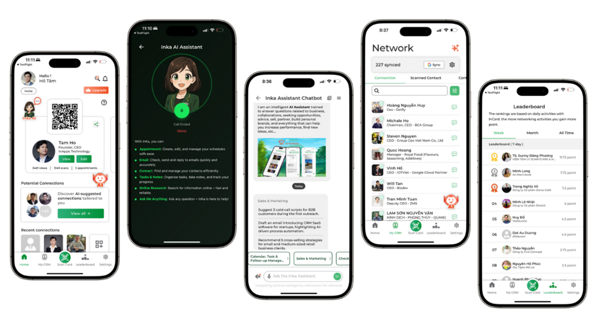 Được biết thêm, gần đây, InCard đang từng bước mở rộng lộ trình phát triển sản phẩm bằng việc ra mắt Inka - Trợ lý số thông minh. Đây được xem là bước tiến chiến lược của công ty trong việc ứng dụng trí tuệ nhân tạo để đồng hành cùng doanh nghiệp và cá nhân, tối ưu hóa hiệu suất làm việc cũng như quản trị các mối quan hệ kinh doanh.