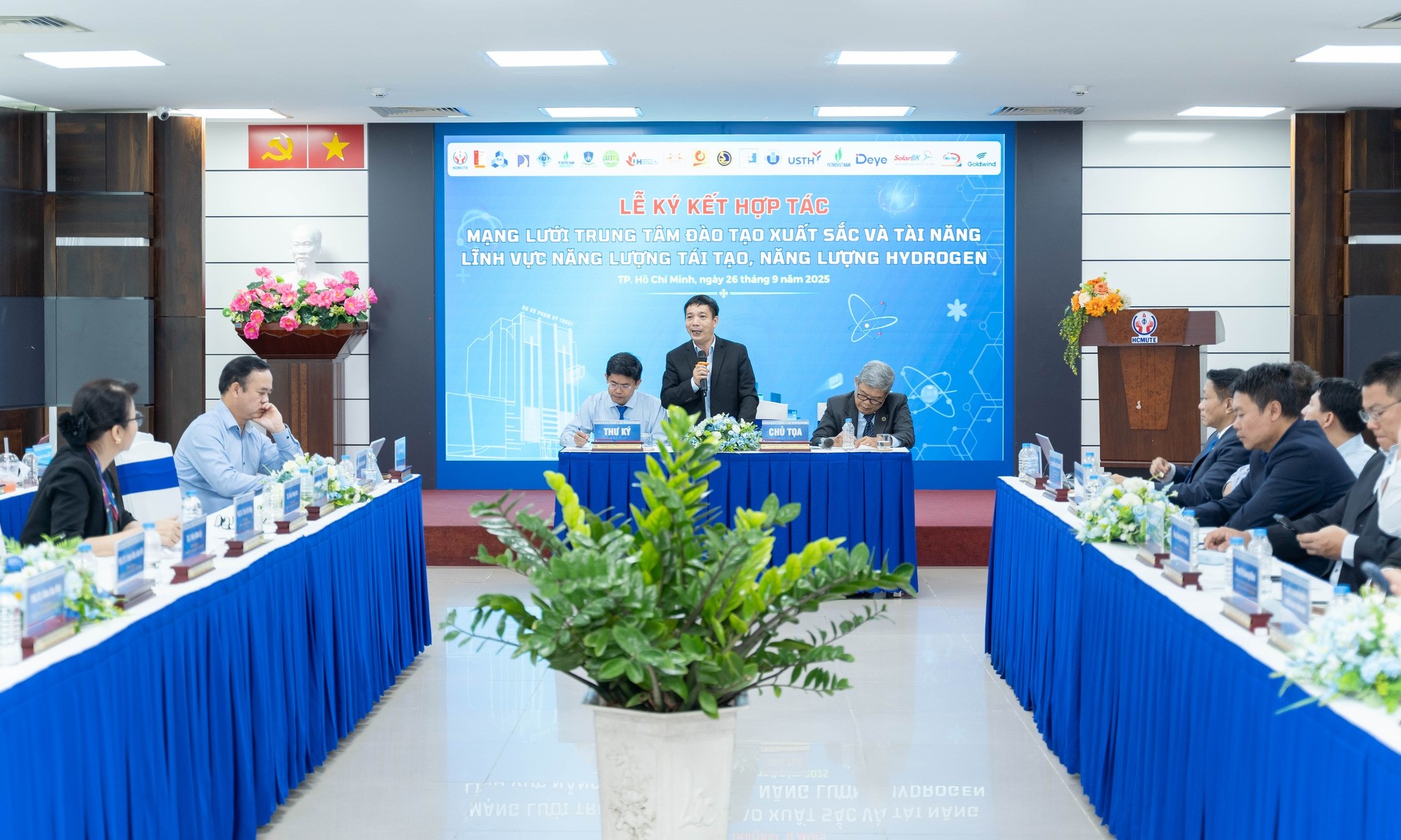 Sáng ngày 26/9/2025 vừa qua, trường Đại học Sư phạm Kỹ thuật TP.HCM (HCMUTE) đã long trọng tổ chức Lễ ký kết hợp tác Mạng lưới Trung tâm đào tạo xuất sắc và tài năng trong lĩnh vực năng lượng tái tạo và năng lượng Hydrogen, đồng thời công bố và ra mắt các nhóm nghiên cứu trọng điểm của Nhà trường.