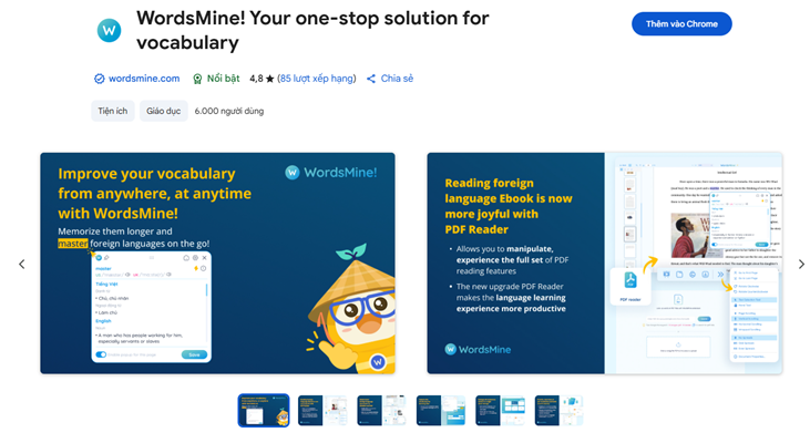 WordsMine mang đến một loạt công cụ thông minh giúp người học tăng tốc vốn từ vựng một cách tự nhiên trong quá trình sử dụng Internet hàng ngày. Tiện ích mở rộng trình duyệt cho phép người dùng tra nghĩa nhanh chóng bằng cách nhấp đúp vào bất kỳ từ nào, đồng thời lưu từ vào bộ sưu tập cá nhân để ôn tập sau.